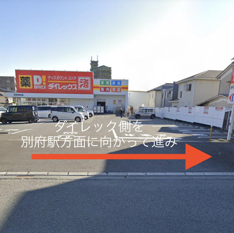 幸通りを別府駅方向に進みダイレックスを目印に進みます