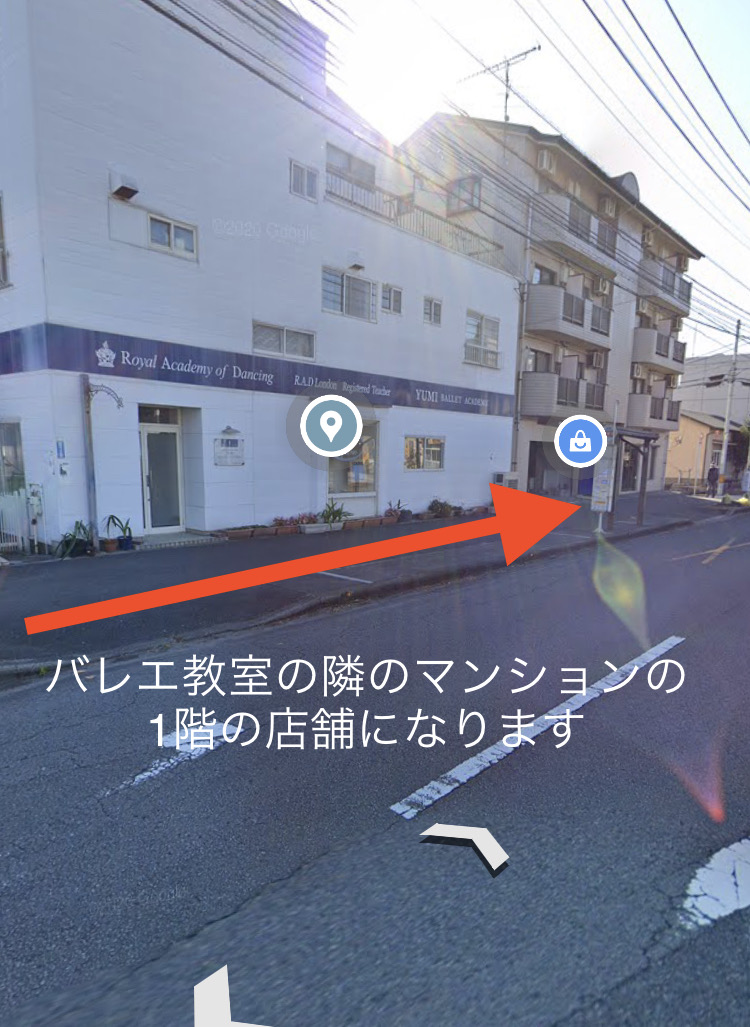 ダイレックス横のバレエ教室のとなりのマンションの1階に店舗があります